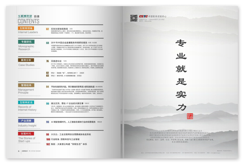 《互聯(lián)網(wǎng)經(jīng)濟》秉承“效率才是經(jīng)濟之本”的價值理念,為互聯(lián)網(wǎng)精英提供強大的智力與資源支持平臺;發(fā)起成立“中國互聯(lián)網(wǎng)百強企業(yè)聯(lián)盟”,每年權(quán)威《中國互聯(lián)網(wǎng)企業(yè)百強》報告。