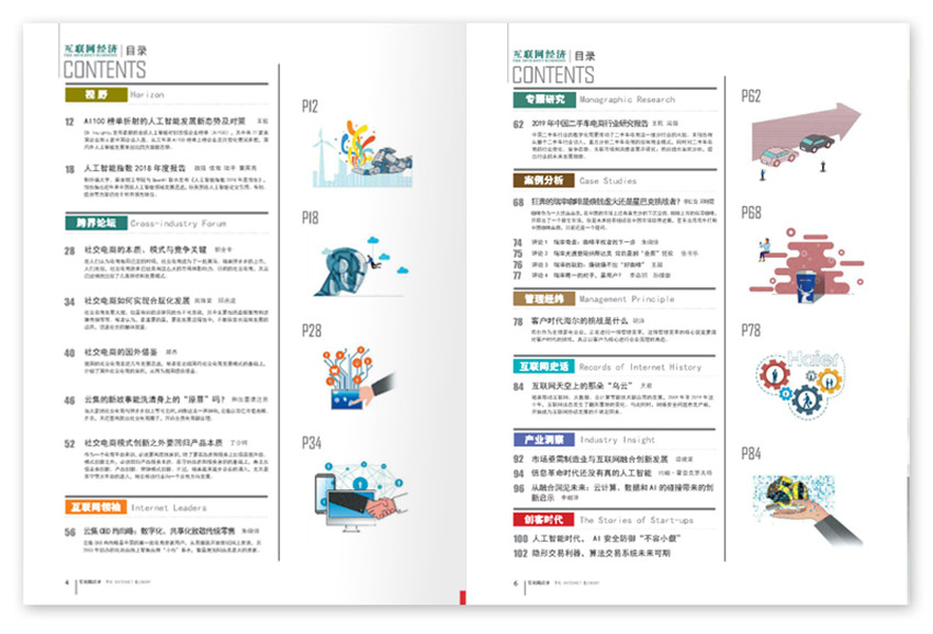 《互聯(lián)網(wǎng)經(jīng)濟》給讀者帶來全新的閱讀體驗,無論發(fā)行量還是影響力,均在數(shù)碼通訊雜志中位居前列?!痘ヂ?lián)網(wǎng)經(jīng)濟》秉承“效率才是經(jīng)濟之本”的價值理念,為互聯(lián)網(wǎng)精英提供強大的智力與資源支持平臺;發(fā)起成立“中國互聯(lián)網(wǎng)百強企業(yè)聯(lián)盟”,每年權(quán)威《中國互聯(lián)網(wǎng)企業(yè)百強》報告。