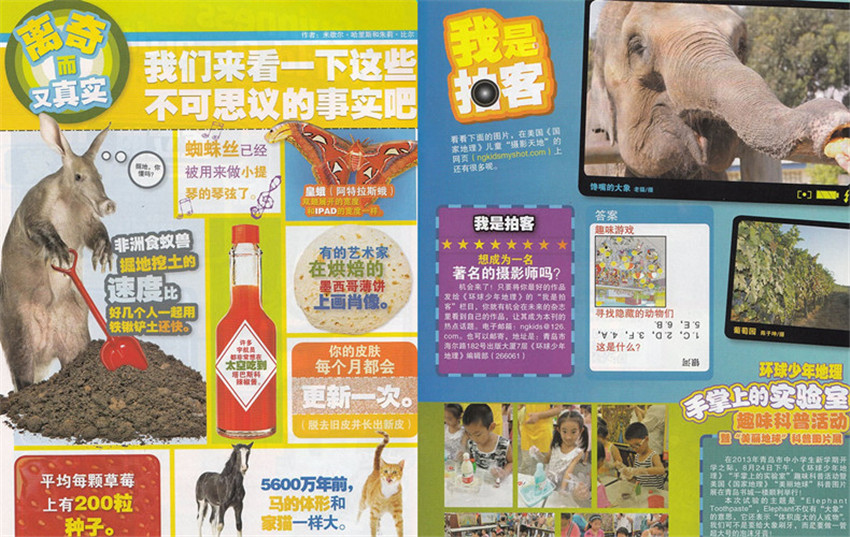 《環(huán)球少年地理》給讀者帶來全新的閱讀體驗(yàn),無論發(fā)行量還是影響力,均在青少年閱讀雜志中位居前列。通過童趣的行文風(fēng)格:幽默風(fēng)趣的筆觸,搭配精美、震撼的圖片,讓孩子們在驚訝中認(rèn)識世界,在快樂中感受大自然的美麗與神奇,帶你領(lǐng)略令人驚訝的動物、炫酷的科技、刺激的探險(xiǎn)、神秘的太空,拉風(fēng)的游戲。