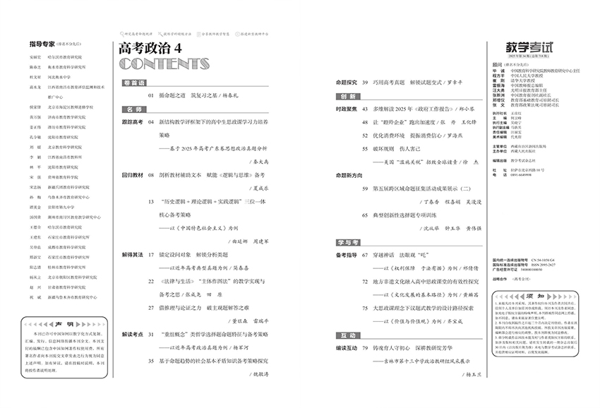 總結(jié)學(xué)科教學(xué)經(jīng)驗(yàn)是雜志服務(wù)教師成長的重要抓手。雜志的 “名師經(jīng)驗(yàn)談” 欄目,匯聚了全國各省市中小學(xué)學(xué)科帶頭人、骨干教師的寶貴經(jīng)驗(yàn),這些經(jīng)驗(yàn)均來自一線教學(xué)實(shí)踐,具有極強(qiáng)的可操作性。探索試題命制動向與技巧,是雜志助力教師把握考試核心的關(guān)鍵內(nèi)容。雜志緊密跟蹤教育部課程標(biāo)準(zhǔn)更新與考試政策調(diào)整,在 “命題趨勢解讀” 欄目中,邀請命題專家、資深教研員深入分析不同學(xué)段、不同學(xué)科的試題命制方向。