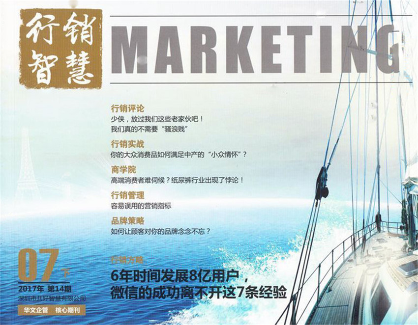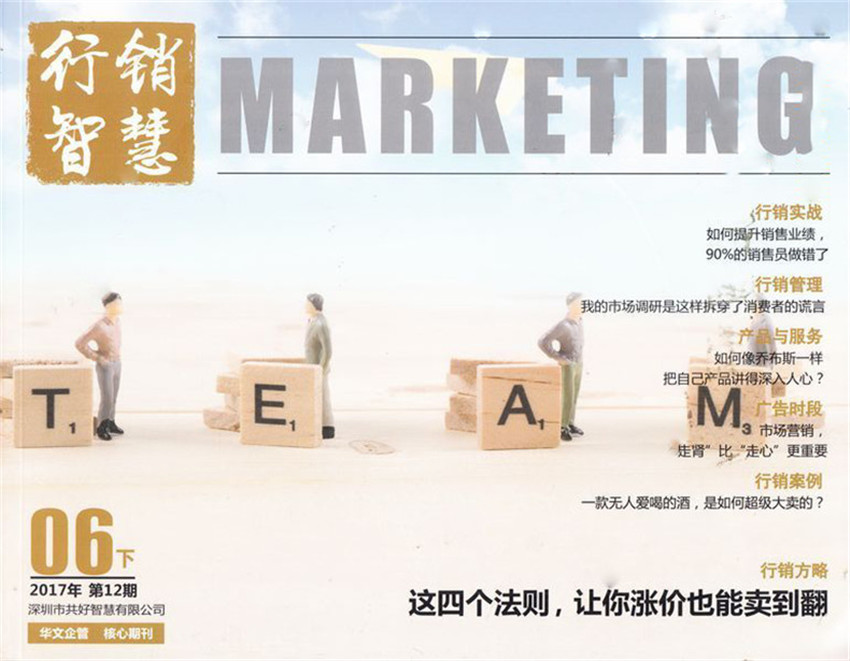 《行銷智慧》雜志以提升企業(yè)的營(yíng)銷水平,解決企業(yè)營(yíng)銷的策略、企劃及實(shí)操問(wèn)題,幫助中國(guó)企業(yè)做強(qiáng)做大為宗旨。