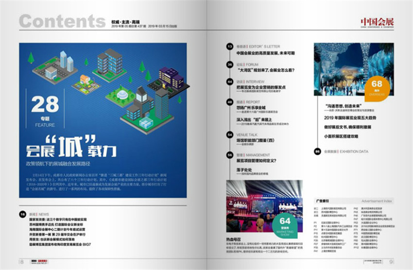 《中國(guó)會(huì)展》給讀者帶來(lái)全新的閱讀體驗(yàn),無(wú)論發(fā)行量還是影響力,均在財(cái)經(jīng)類(lèi)雜志中位居前列。中國(guó)會(huì)展業(yè)具廣泛影響力的核心傳媒。雜志憑借其權(quán)威、客觀、公正的新聞報(bào)道以及全面、準(zhǔn)確、及時(shí)的會(huì)展資訊,成為海內(nèi)外會(huì)展企業(yè)了解中國(guó)會(huì)展市場(chǎng)的首選媒體。