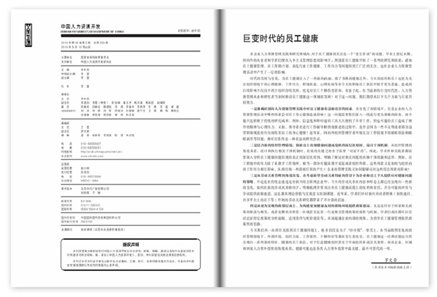 《中國(guó)人力資源開發(fā)》給讀者帶來(lái)全新的閱讀體驗(yàn),無(wú)論發(fā)行量還是影響力,均在職場(chǎng)培訓(xùn)類雜志中位居前列。始終引領(lǐng)著中國(guó)人力資源開發(fā)與管理理論與實(shí)踐的潮流,在傳播人力資源開發(fā)和管理的理論、技術(shù)與方法等方面所作的突出貢獻(xiàn),博得了業(yè)界人士的一致好評(píng)。