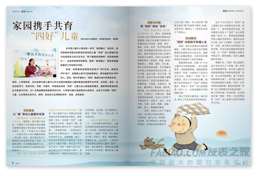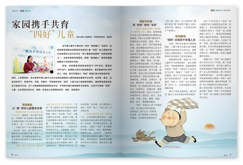 《中華家教》給讀者帶來全新的閱讀體驗(yàn),無論發(fā)行量還是影響力,均在學(xué)習(xí)輔導(dǎo)雜志中位居前列。新穎、科學(xué)、智慧、實(shí)用的家庭教育理念、方法和咨詢,始終堅(jiān)持正確的輿論導(dǎo)向,堅(jiān)持正確的辦刊宗旨,全心全意為少年兒童和家長(zhǎng)服務(wù)。