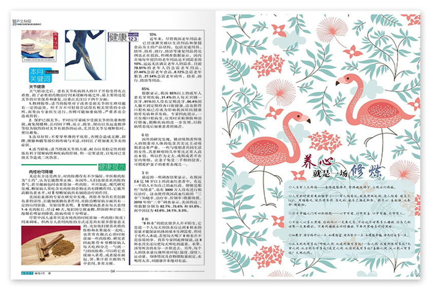 以40-60歲的中老年人為主要讀者群體,定位于有一定經(jīng)濟條件同時關(guān)注養(yǎng)生、有精力有時間有能力的中老年人,除了傳達“以養(yǎng)防病、以養(yǎng)祛病”的理念外,還會是一本關(guān)注中老年人及家庭成員身心健康的養(yǎng)生期刊。
